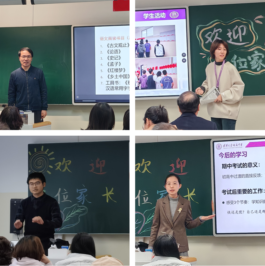 语文学科教师、英语学科教师、物理学科教师、班主任教师在班级中与家长作交流