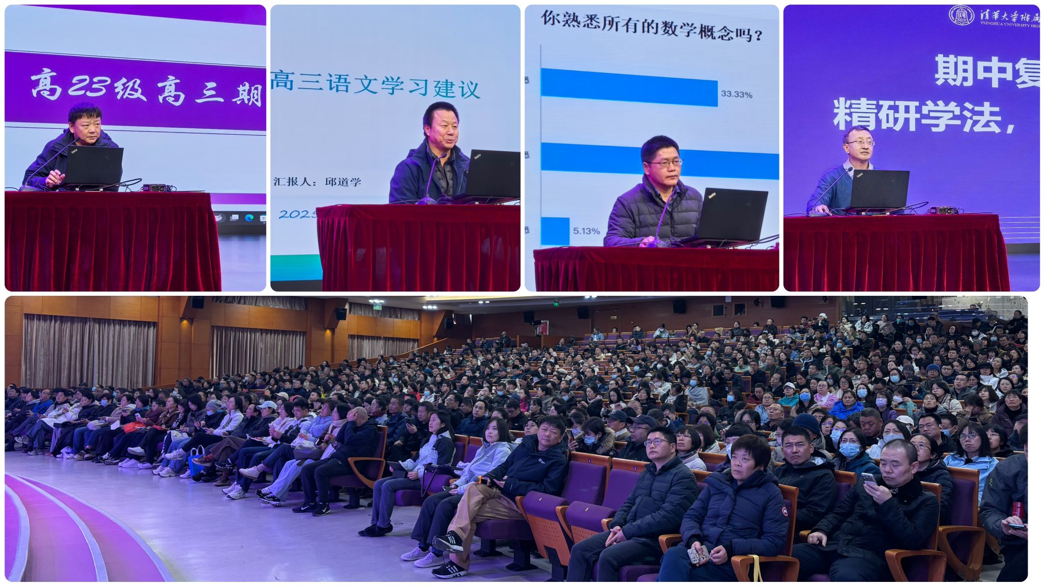 李劲松副校长以《启航新征程》为题,从考试底层逻辑、高三核心问题与成功法宝三方面提出要求,强调教师需精研备考、回归教育初心、凝聚团队合力,创新高三教育工作。徐文兵副校长以《蓄势、谋势、乘势,顶峰相见》作总结讲话,强调学生要内化知识、狠抓基础,教师需精进素养、因材施教,通过精准施策、团队协同与把握关键时机,进行下一阶段备考。