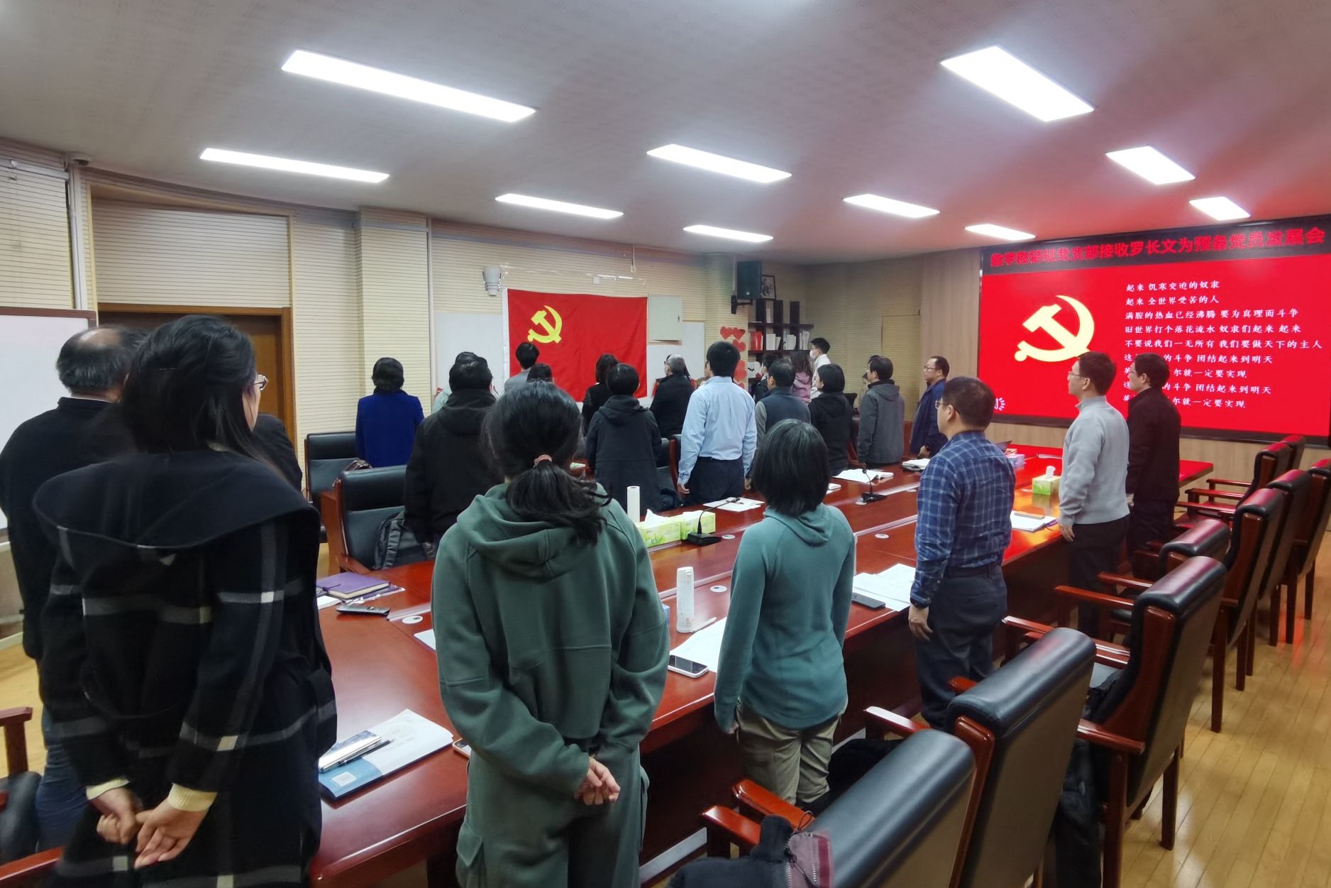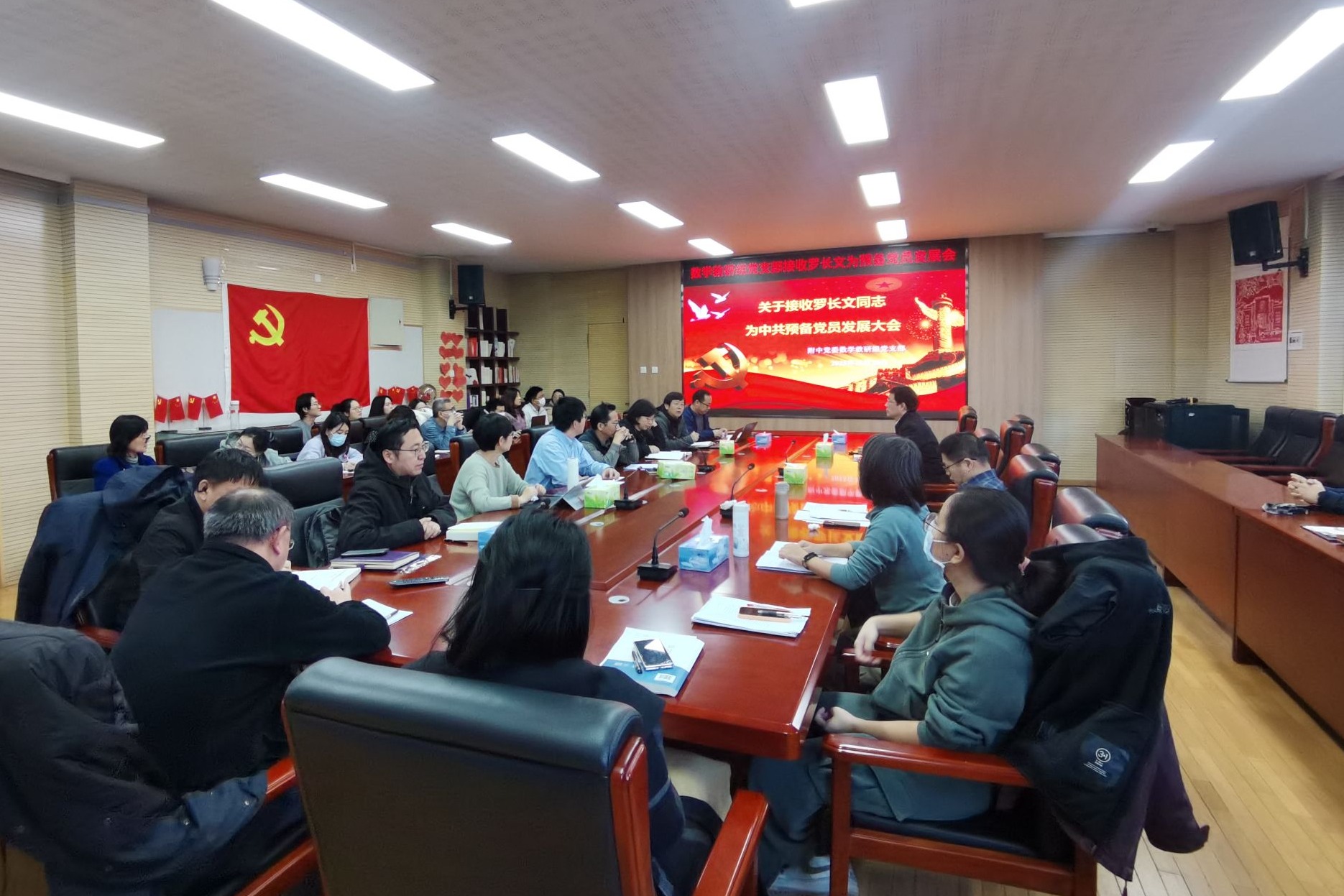 11月20日下午,澳门博彩在线数学教研组党支部召开接收罗长文同志为中共预备党员发展大会。澳门博彩在线党委书记曹海翔,纪委书记魏磊,数学教研组党支部全体党员和入党积极分子、青年教师近40人参加大会,会议由党支部书记李劲松主持。