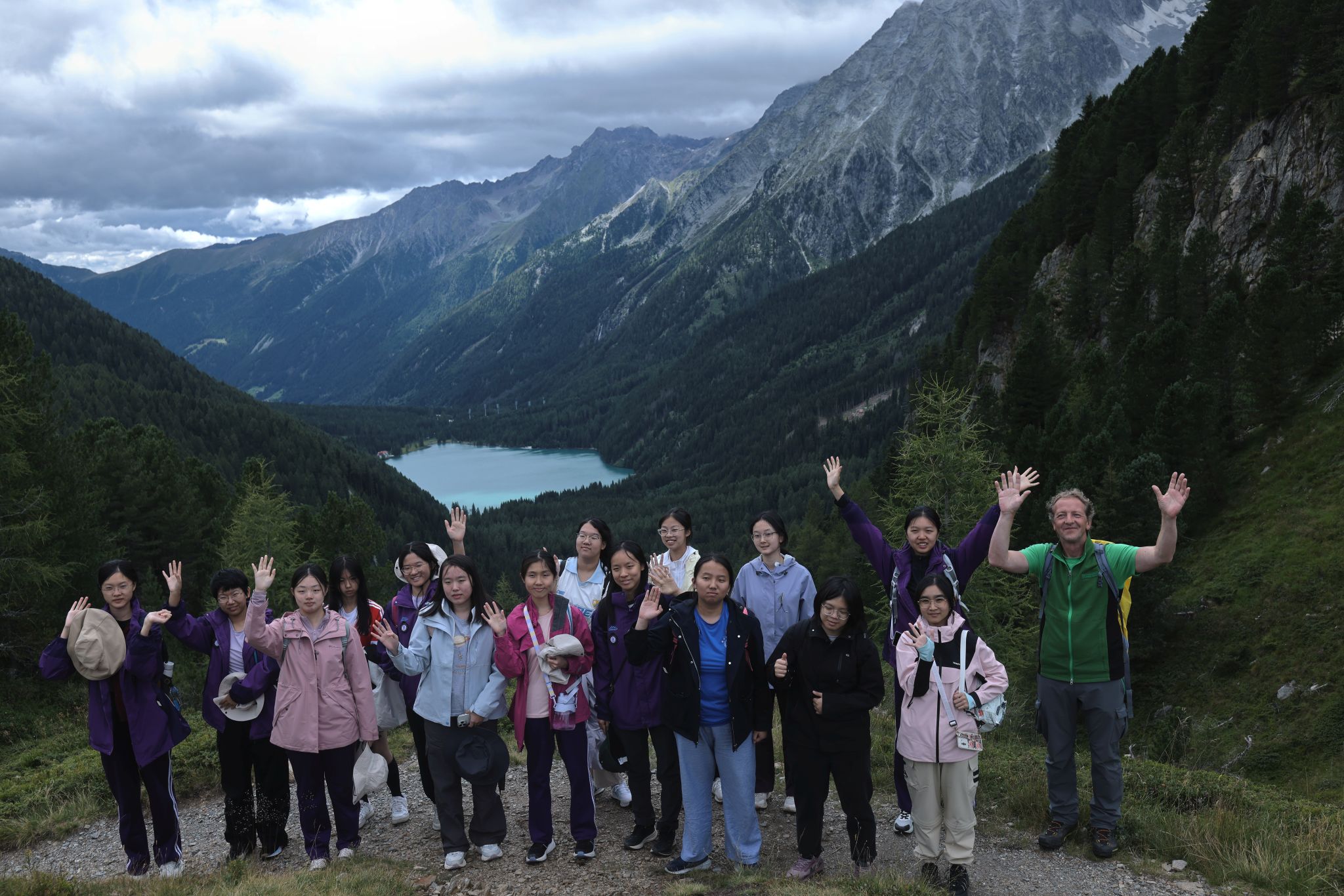 离开维也纳,研学团来到奥地利高地陶恩国家公园,同学们立时走进了一座无比巨大而又美轮美奂的“自然课堂”。大钟山徒步途中,山间碎石路引导我们向上攀登。峡谷中溪流潺潺,俯身观察袅娜的水草;密林里鸟声清脆,停下脚步,顺着老师的指引寻找野生动植物的踪迹。同学们用手机拍下了许多珍贵美好的瞬间。