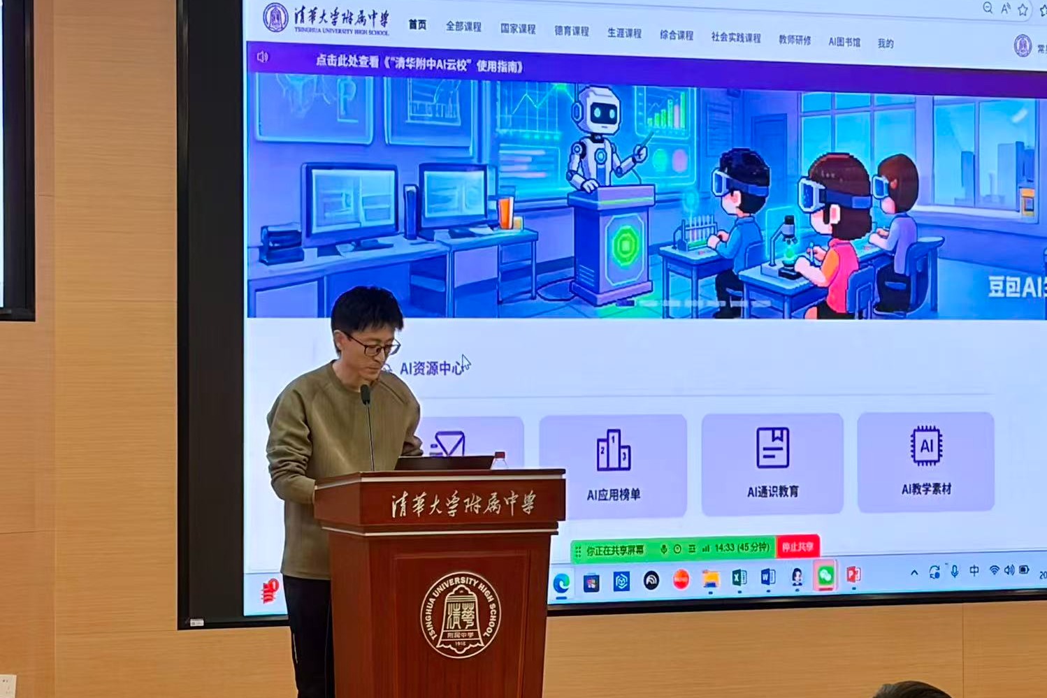 活动中,网校负责人常昊男老师详细介绍了学校AI云校的多元功能,包括教学素材库、智能阅卷系统、数字人录课等,展示了AI在教学素材生成、日常办公、试卷批阅等方面的实用价值,为教师高效工作提供了技术支持。