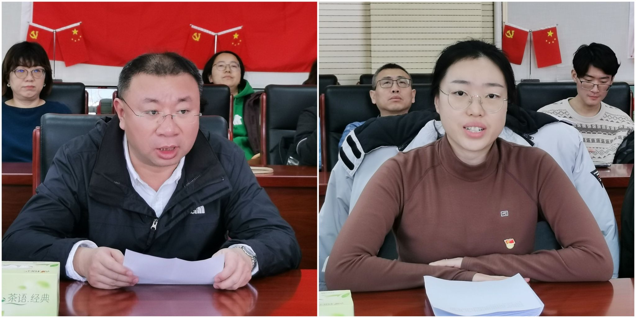 入党介绍人周俊同志(左)、张祎憧同志(右)介绍考察情况