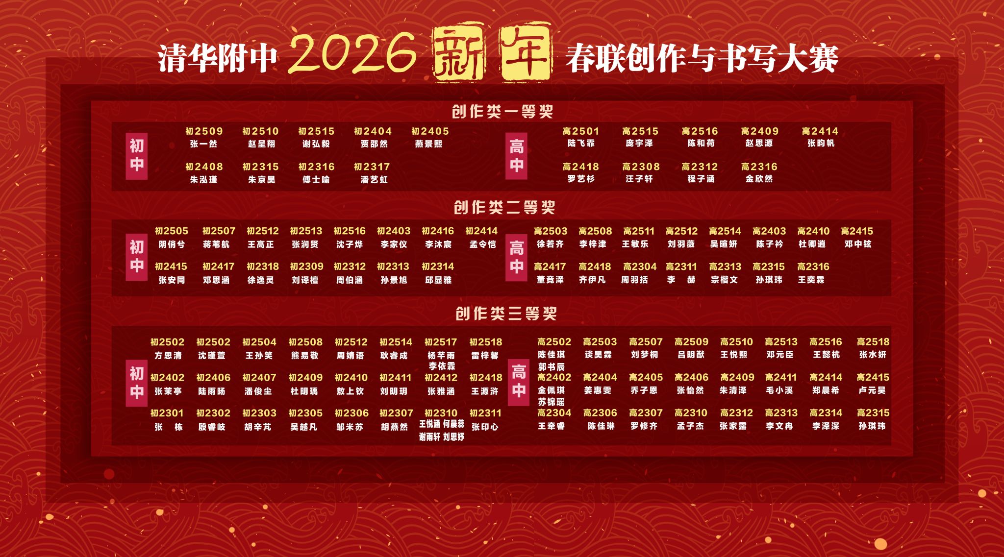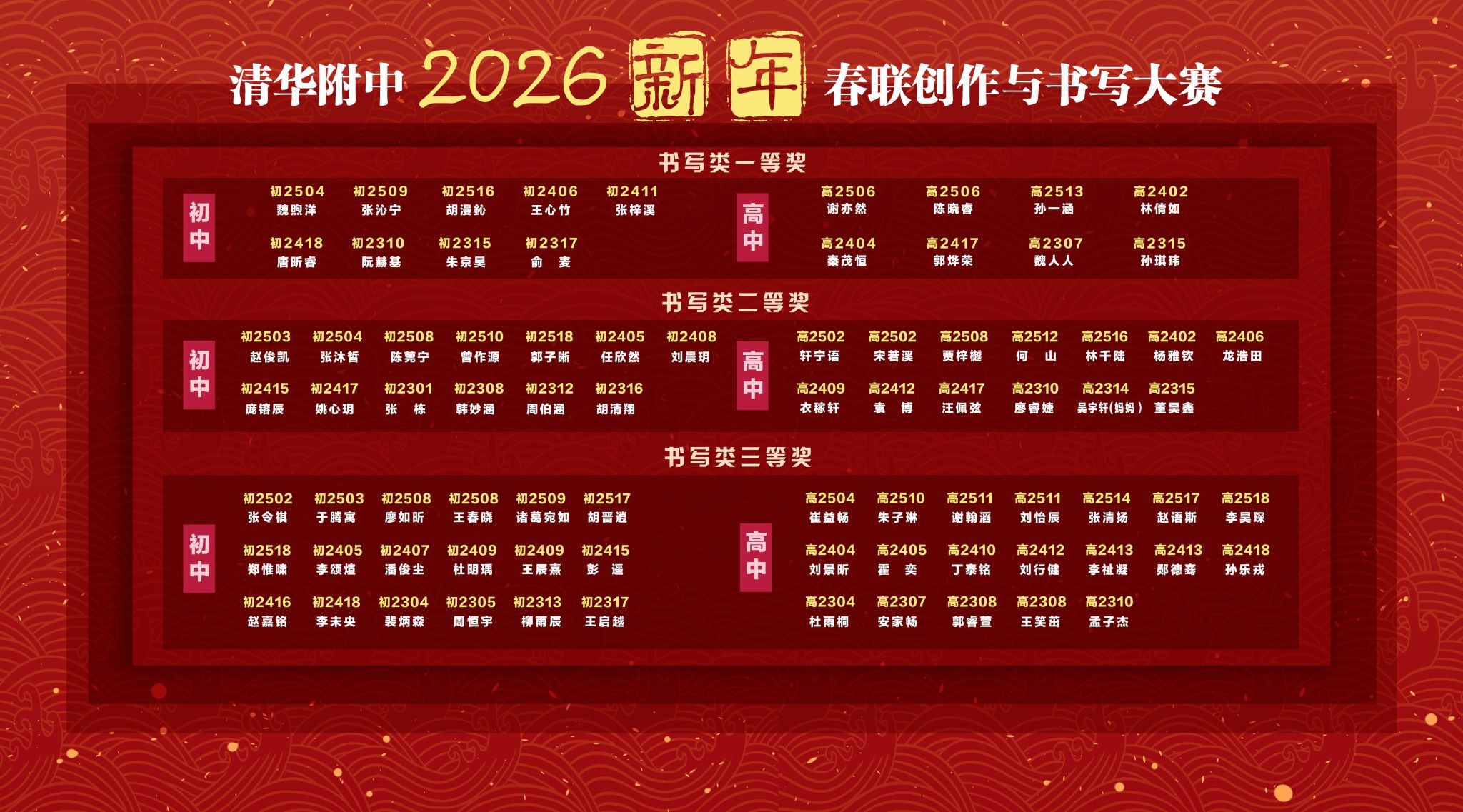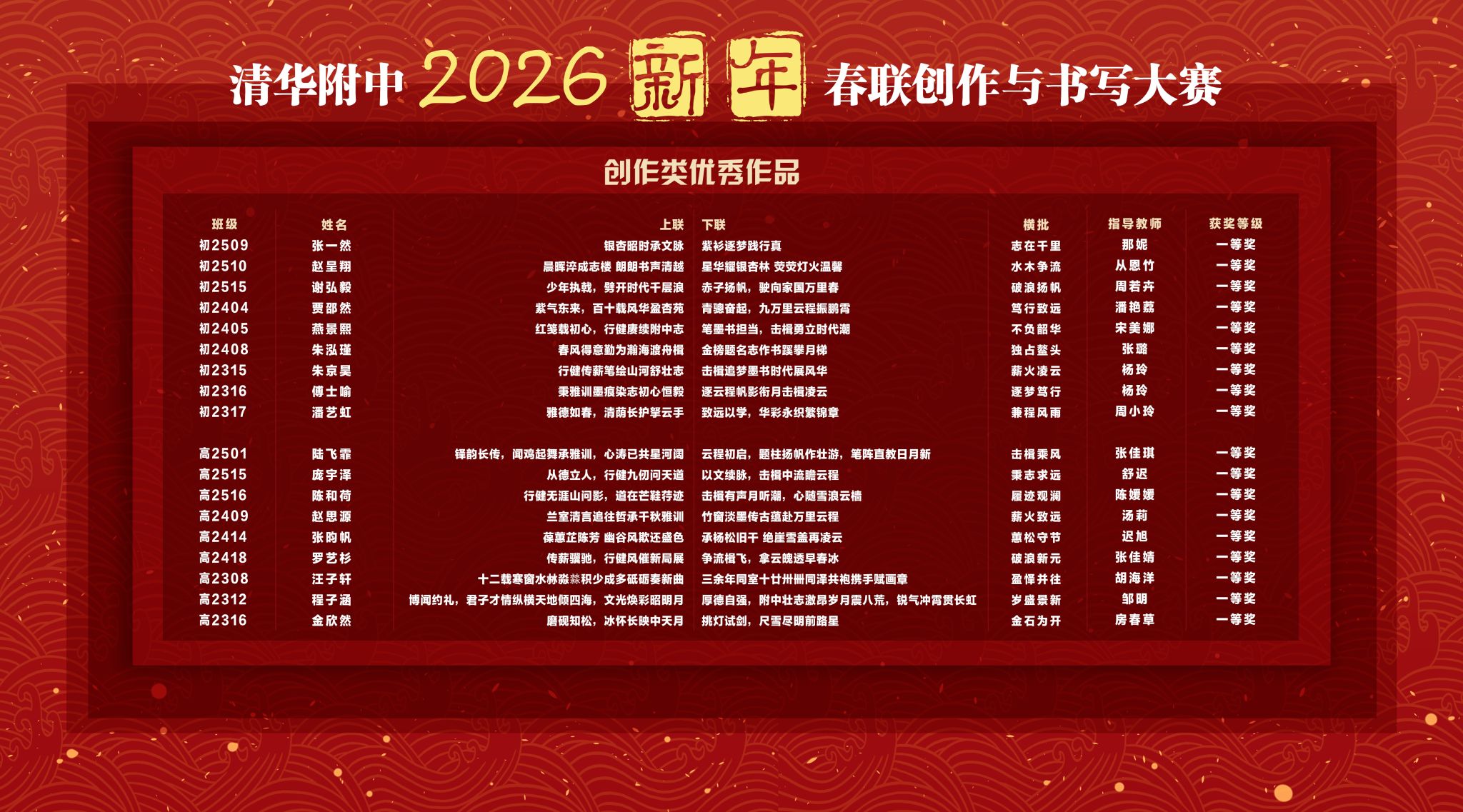 春联书写获奖名单