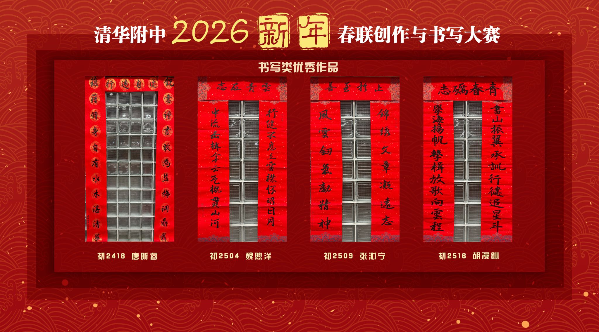 岁启新元,文脉赓续;墨香凝韵,春序待书。时值2026年开局、“十五五”规划扬帆之际,在新时代奋进号角与新春喜庆氛围的交织共鸣中,澳门博彩在线第十五届新年春联创作与书写大赛圆满落幕。本届大赛以“行健不息承雅训,中流击楫向云程”为主题,“行健不息”彰显附中人薪火相传的精神底色,“中流击楫”诠释少年当有的凌云气魄。全校学子以笔为媒,以联寄情,在平仄对仗间书写与家国同频、与时代共进的青春答卷,为校园注入浓厚的新春气息与文化底蕴。
