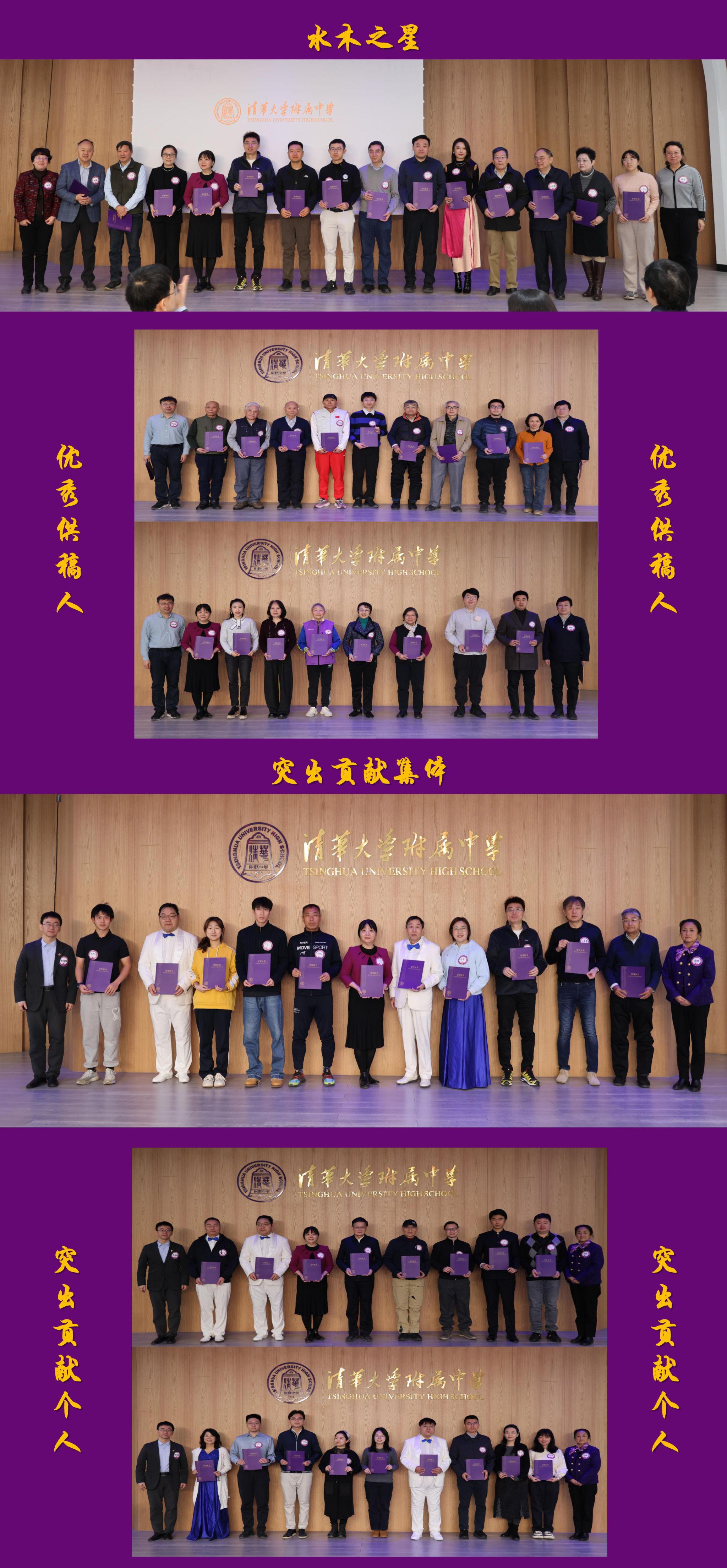 为感谢校友在过去一年对学校的支持服务,大会对获得"优秀召集人""水木之星""优秀供稿人"以及"突出贡献奖"的校友集体和个人进行了表彰。