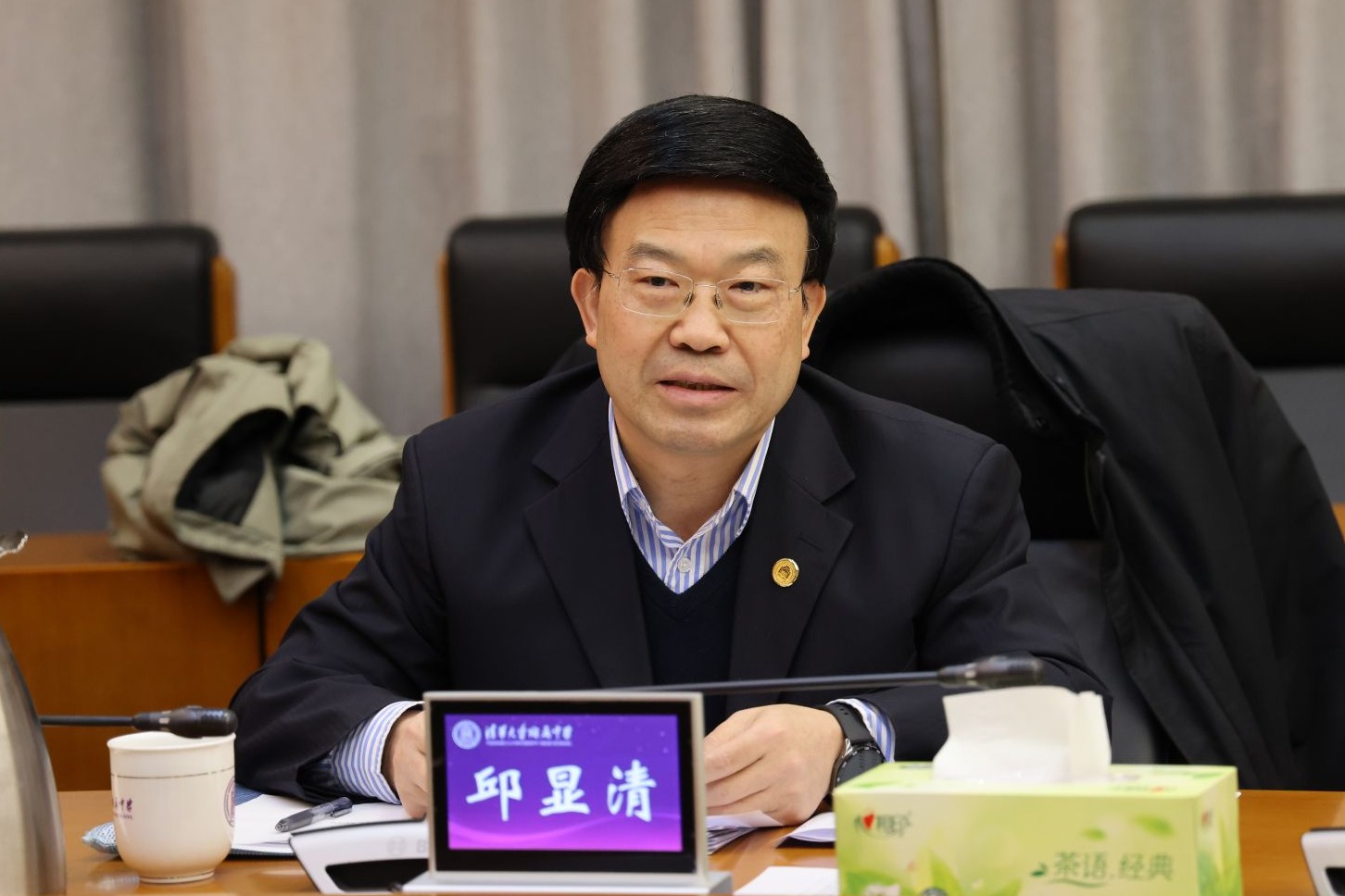清华大学党建联系指导组成员,清华大学出版社党委书记、董事长邱显清出席会议