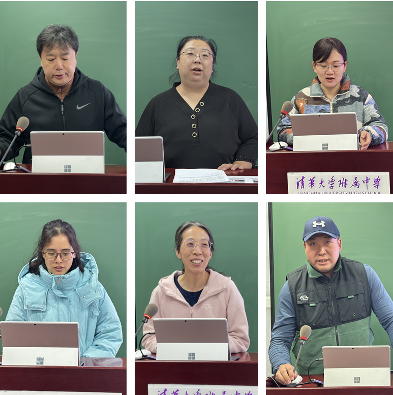 语文备课组组长郑铉、数学备课组组长张晓明、英语备课组组长熊学勤、物理备课组组长陈艺灵、道德与法治备课组组长郎艳、体育备课组组长冉文洋作汇报