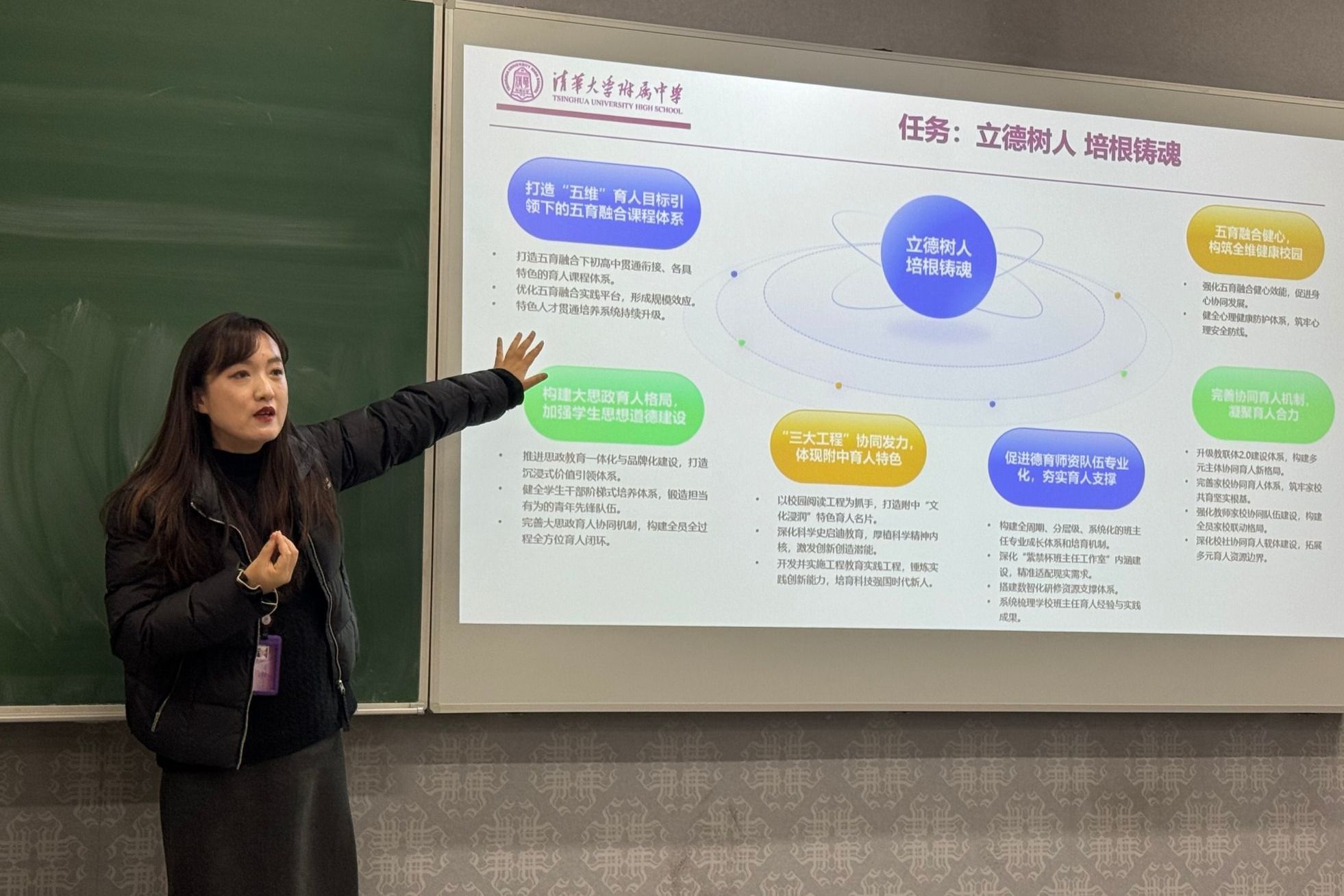 教育分论坛围绕学生发展中心新学期工作部署展开,由唐洁副主任主持。首先,她围绕学校育人核心工作,结合人工智能快速发展的时代背景,明确了学生发展中心新学期的工作核心与方向。她指出,人工智能的飞速迭代对教育工作提出了新挑战,而教育工作者的核心价值在于对学生的价值观引领、人格塑造与情感链接。围绕学校育人工作重点,唐洁副主任提出新学期工作要聚焦五大核心方向:一是以学校五维育人目标为引领,打造五育融合的课程体系,持续推进社团、生涯等活动课程升级;二是构建大思政育人格局,让所有活动彰显思政性、突出引领性,以无痕德育提升学生思想道德素养;三是紧扣校园阅读、科学史启迪、工程教育实践三大工程落地,推动阅读与实践深度融合;四是推进德育师资队伍专业化建设,明确全体职员老师皆是德育师资,共同承担学生思想品德培养责任;五是坚守“健康第一”理念,兼顾学生身心健康,加强各部门协同配合,筑牢学生健康成长防线。