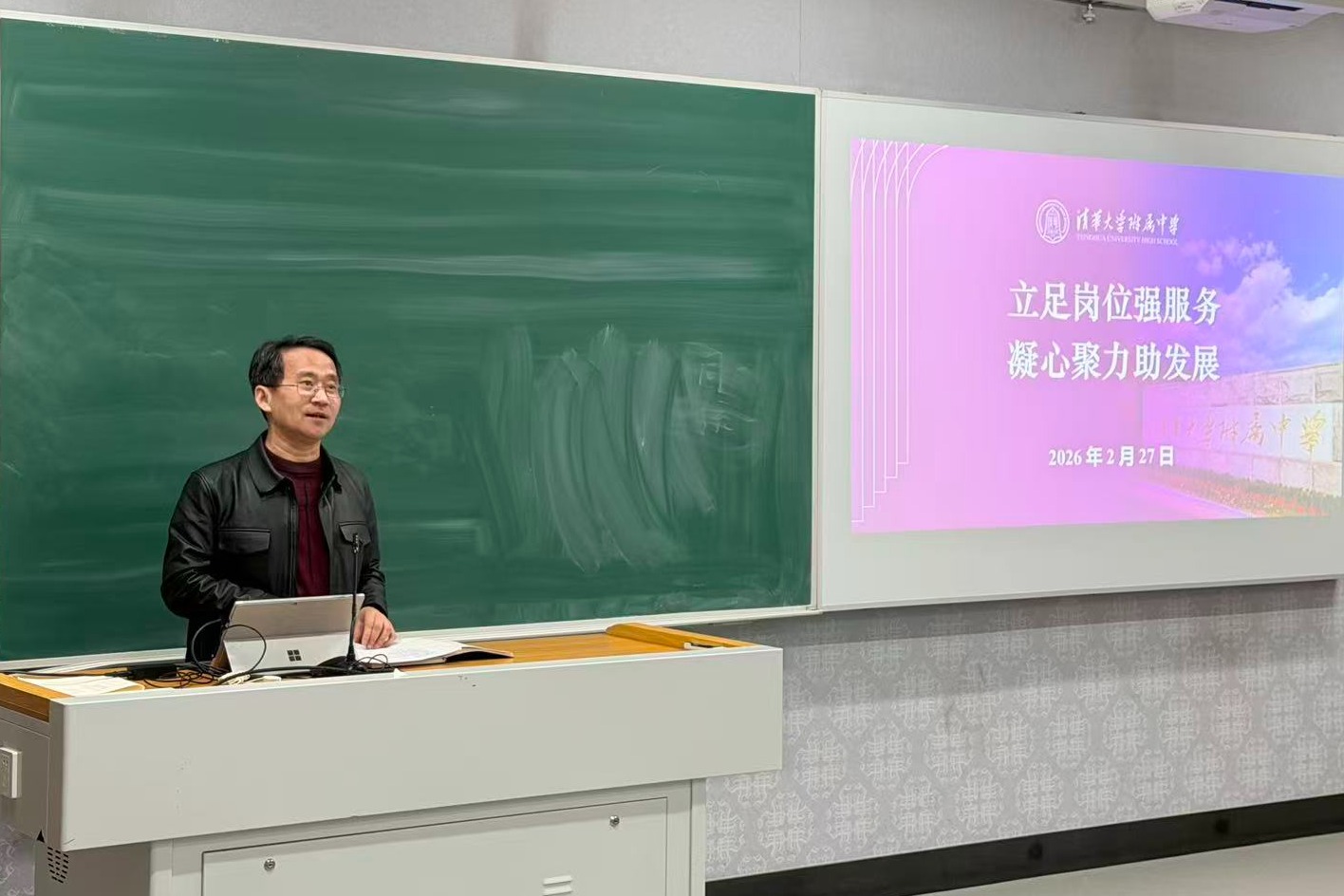 徐文兵副校长向全体职员老师提出三点希望与要求。他强调,新学期伊始,全体职员老师要迅速收心归位,告别松弛状态,以尽快速度进入“工作状态”,全身心投入到教育教学各项工作中;要立足本职岗位,秉持极致标准,做好对学生、家长及教学工作的全方位服务,用细节彰显教育温度,以服务质量提升育人实效;要树立大局意识,着眼学校“十五五”规划长远发展,将个人成长与学校发展紧密结合,凝聚起推动学校前行的强大合力。徐校长特别指出,全体老师要实现两大转变:一是增强主动作为意识,变被动应付为积极谋划,以主人翁姿态深耕岗位、精进服务;二是提升业务本领,摒弃“差不多”的敷衍心态,追求“过得硬”的专业水准,在教学实践中锤炼服务能力、夯实发展根基。