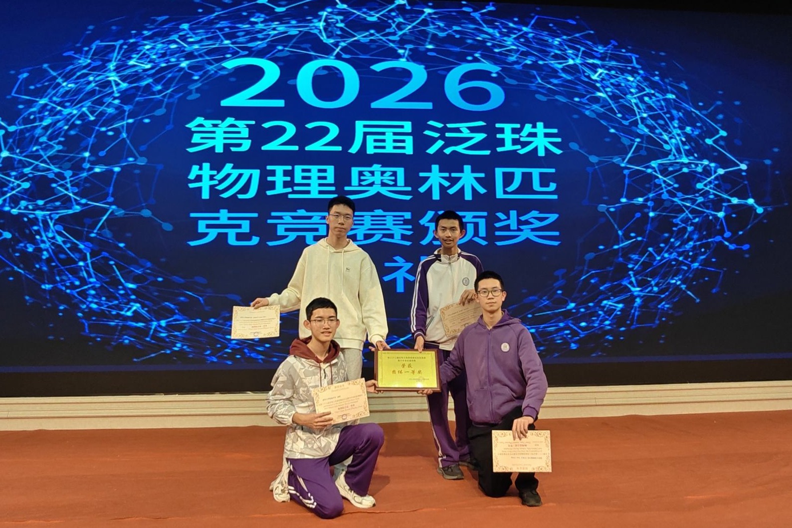近日,2026年第22届泛珠三角物理奥林匹克竞赛暨中华名校邀请赛圆满落幕。澳门网上博彩有3名高二同学和1名高一同学报名参加了赛事中难度最高的综合试比赛(涉及大学普通物理以及部分理论物理内容,并重视联系实际应用)。他们在和来自全国多所名校的400多名竞赛选手的角逐中取得了不俗的成绩:高二学部的吴宇辰同学跻身总分前十,并荣获一等金奖;高二学部的袁博和陈奕卓2位同学排名在前5%;高一学部的江希言同学排名在前10%。4位同学全部获得本届赛事一等奖,他们的指导老师分别是俞鹏老师和郭建超老师,两位老师也荣获本届赛事的“优秀教练奖”。