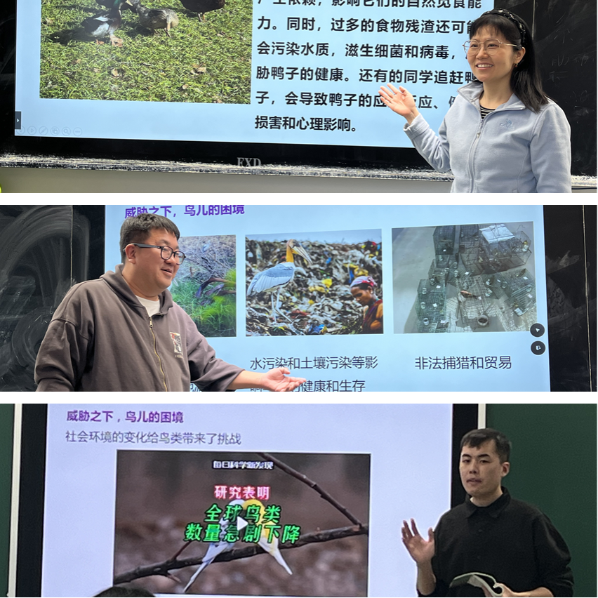 活动伊始,生物备课组的雷红娟、高祺、王艺三位老师以教材知识点为核心,将校园清小鸭作为最鲜活的教学素材,把课堂与校园实景巧妙结合。老师们从鸟类的身体特征娓娓道来,延伸至澳门博彩在线清小鸭的专属校园故事、鸟类与人类的共生关系,再到当下鸟类面临的栖息地破坏、人为伤害等生存困境,用通俗易懂的语言阐述保护鸟类对维护生态平衡的重要意义。