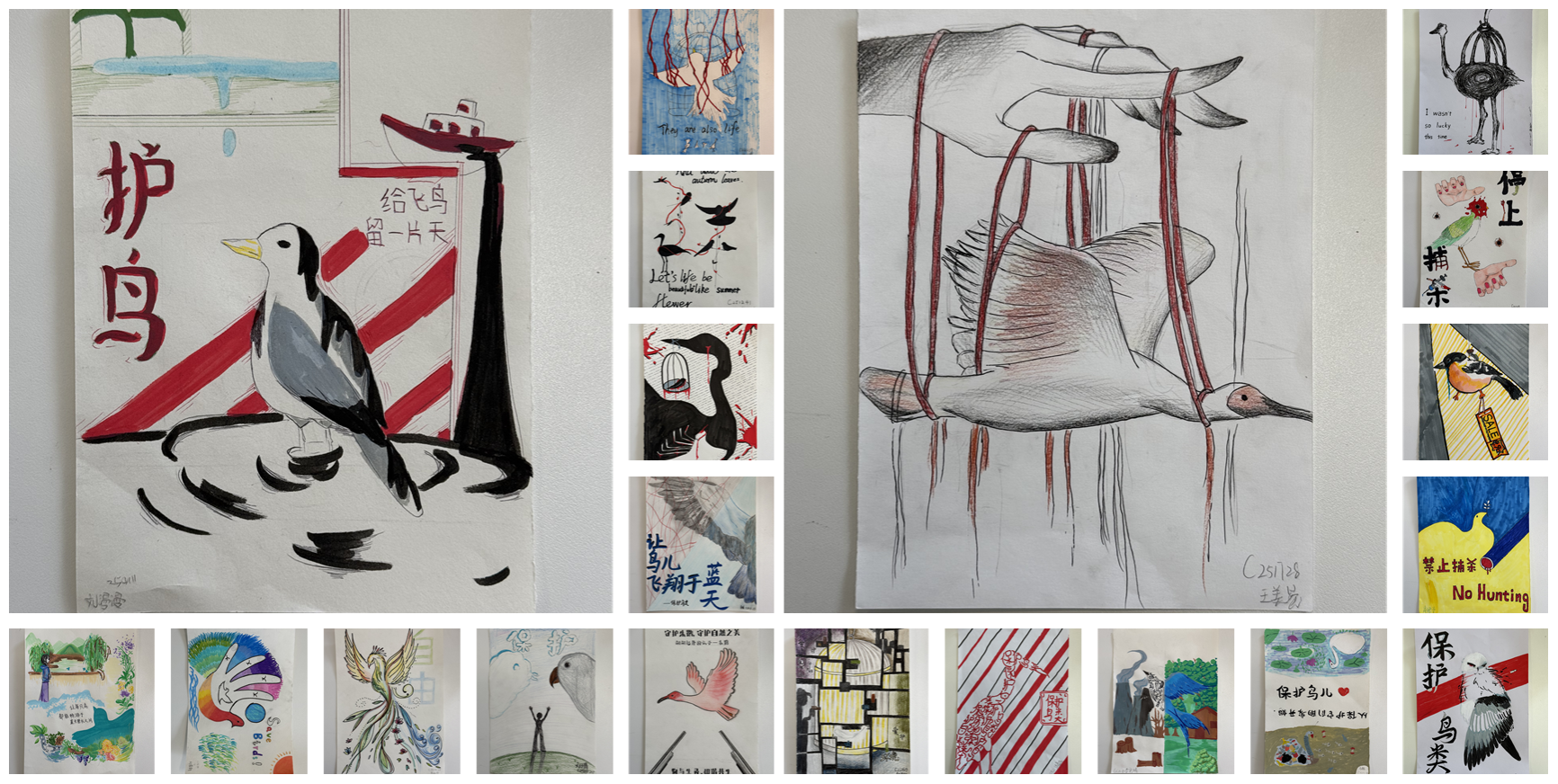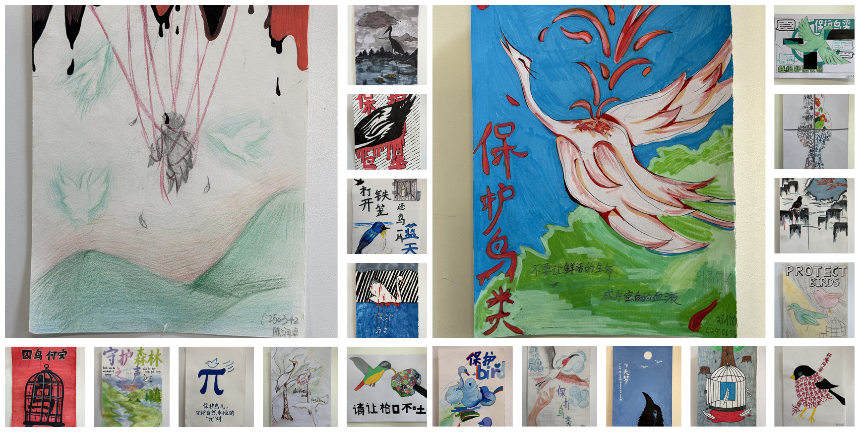 同学们在活动中不仅收获了系统的鸟类科学知识,提升了艺术创作与审美能力,更在跨学科的学习体验中,学会了用科学的视角认识自然、用艺术的方式表达观点,培养了跨学科的思维方式和综合实践能力。而在科艺相融的实践中,尊重生命、关爱自然、守护生态的良好品质也在同学们心中悄然扎根,让爱鸟护鸟的理念真正融入心间。