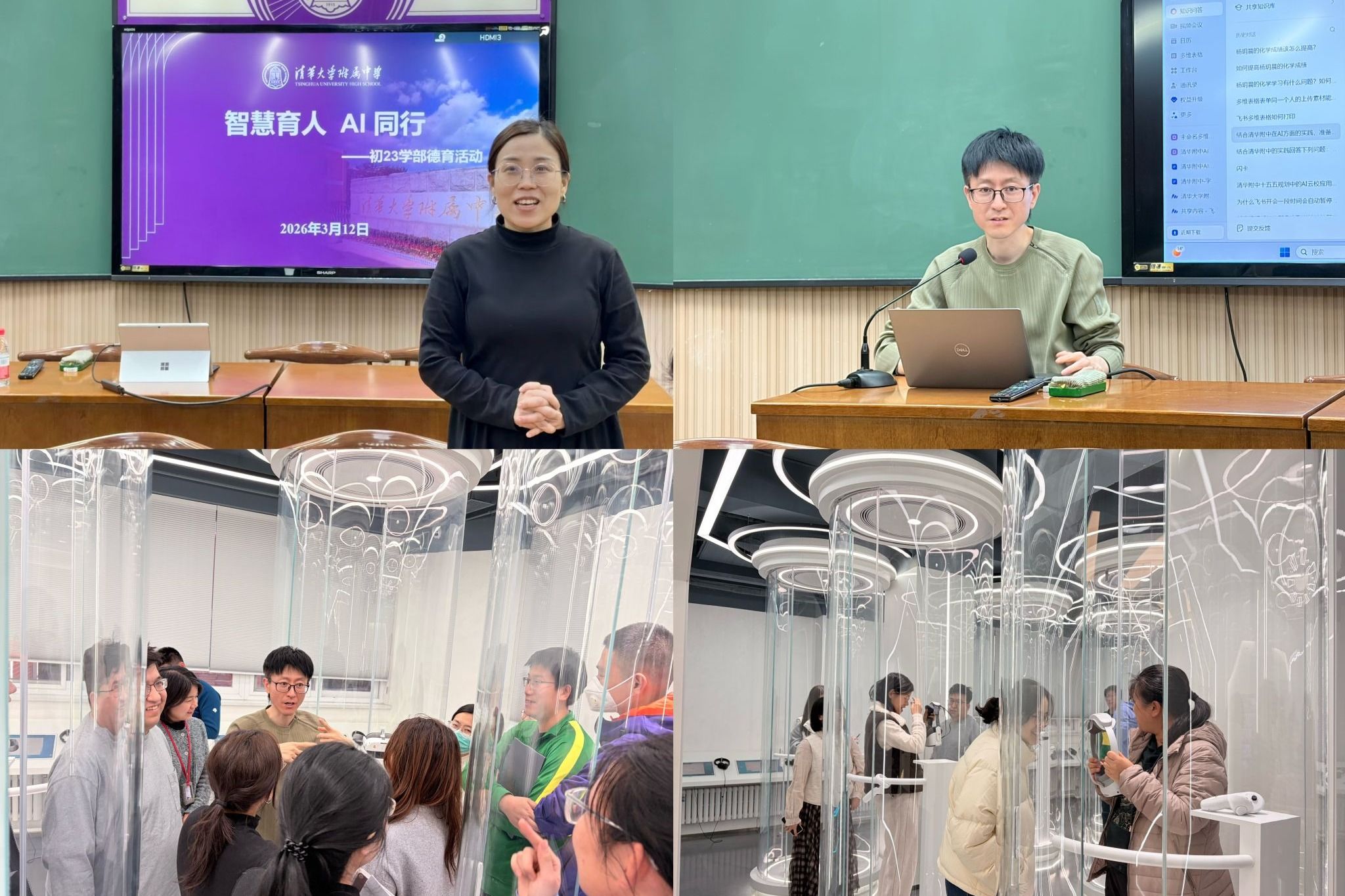 初23学部聚焦技术赋能,开展“以AI赋能德育,以智慧点亮课堂”人工智能主题活动,特邀资源保障中心副主任常昊男开展专业指导。活动中,常老师围绕飞书办公功能实操、澳门博彩在线AI云校建设展开细致讲解,分享AI技术在试卷讲评、精准答疑等教学场景的应用案例,并与教师现场互动答疑。全体教师还走进AI未来教室开展实操体验,进一步拓宽教育教学思路,为将AI技术与校本教学深度融合、提升育人效率奠定基础。