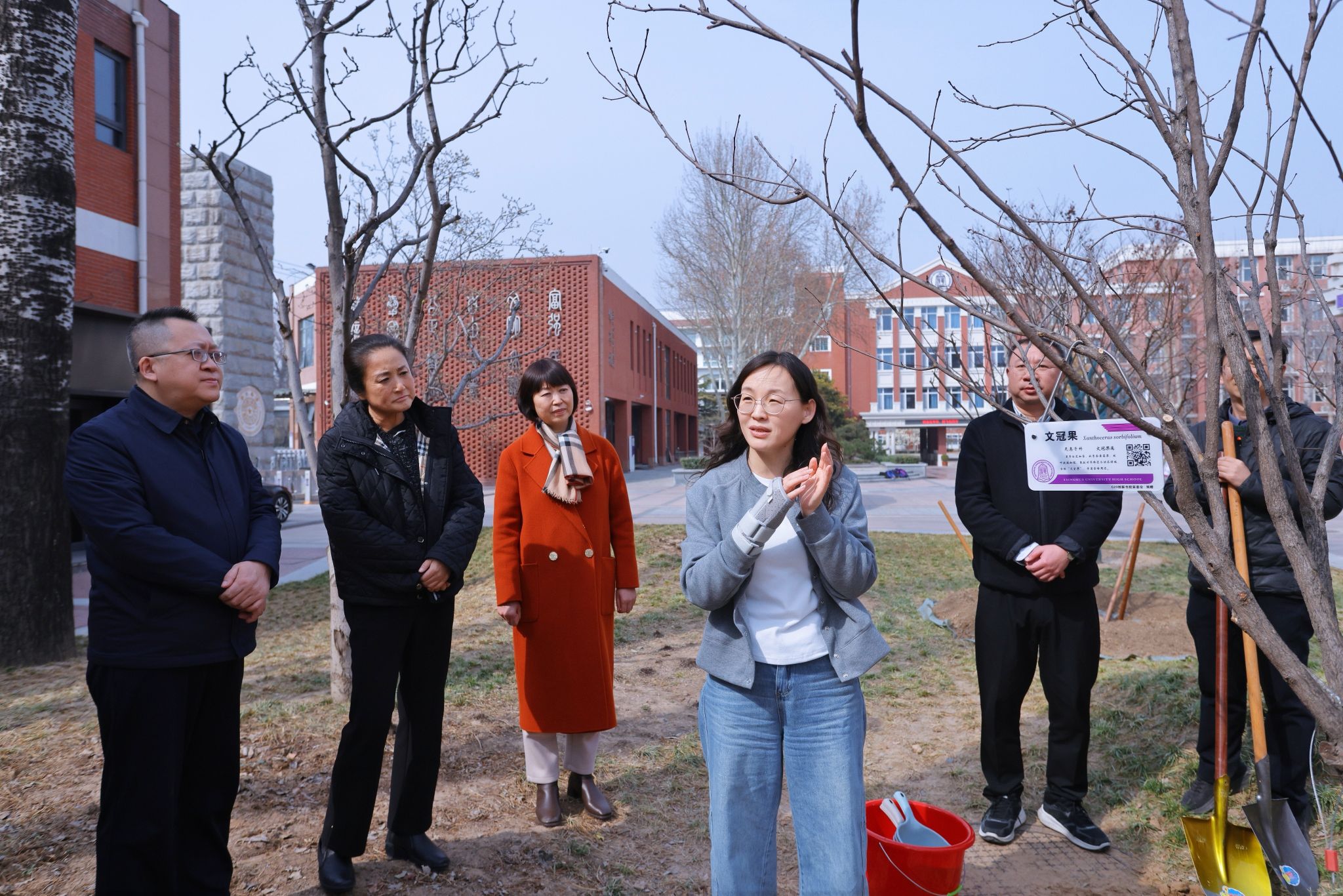现场栽植的文冠树,由C23级创新书院家委会捐赠。校领导、嘉宾、家长代表与师生代表携手培土、浇水,共同为校园再添新绿。随后,方妍校长与家委会代表清华大学电机系主任助理胡伟教授共同为文冠树悬挂捐赠树牌,见证家校同心、共筑美好校园的温馨时刻。