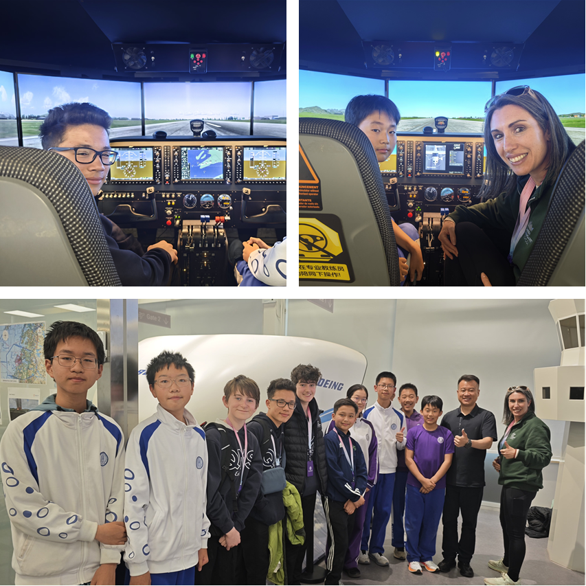 姊妹校同学体验牛顿飞行学院的飞行模拟器