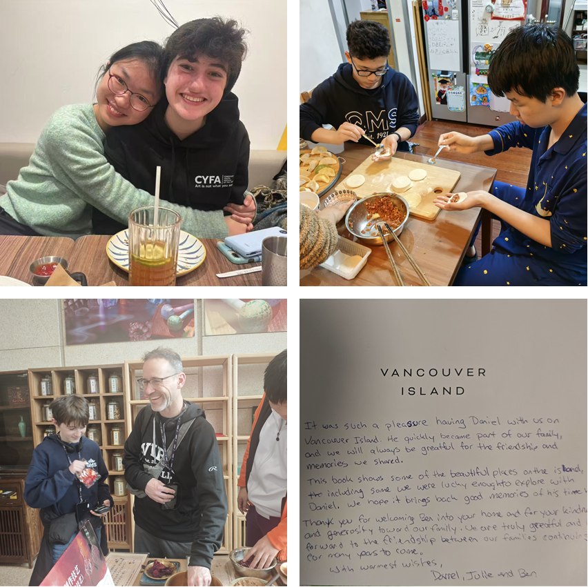 四位加拿大同学入住附中学生家庭,这已是他们的第二次相聚——去年秋天附中学子远赴姊妹校时,便曾入住这些伙伴家中,彼时结下的情谊,让今春的重逢少了客套,多了默契。熟悉的笑容、脱口而出的昵称,都在诉说着一段早已跨越太平洋的友谊。附中家长们用最地道的北京味道迎接孩子们的“老朋友”——铜锅涮肉里升腾的热气、胡同深处摊前的糖葫芦,都是故友归家的温暖。