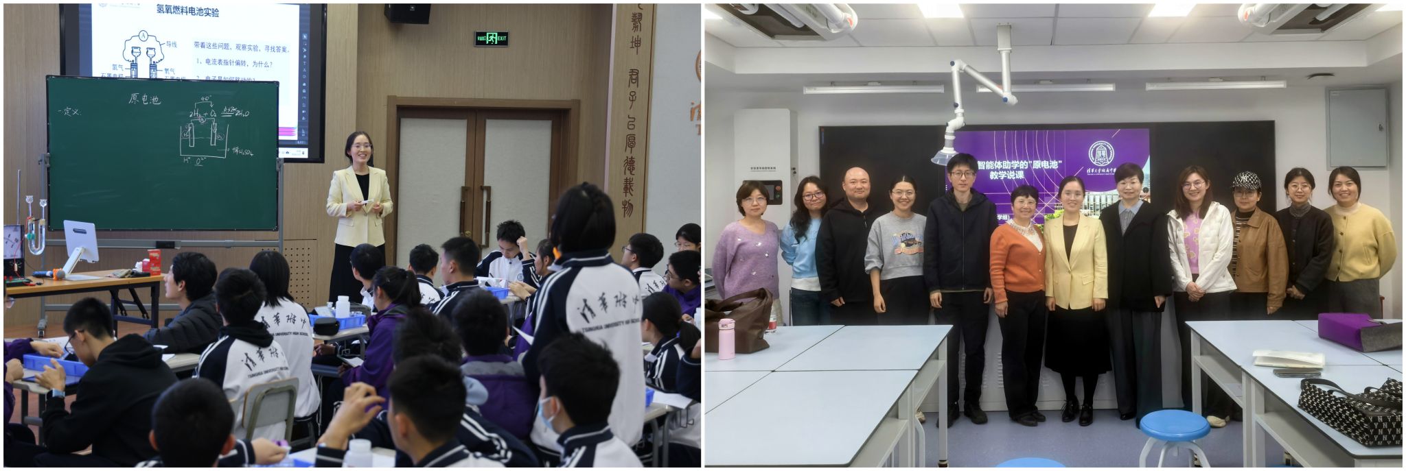 化学组付静老师讲授“原电池”,创新运用AI智能体与互动网页,实现微观粒子可视化与个性化答疑。赵长宏老师点评AI应用恰到好处、锦上添花,尽显“固本培元、守正创新”的教学智慧。
