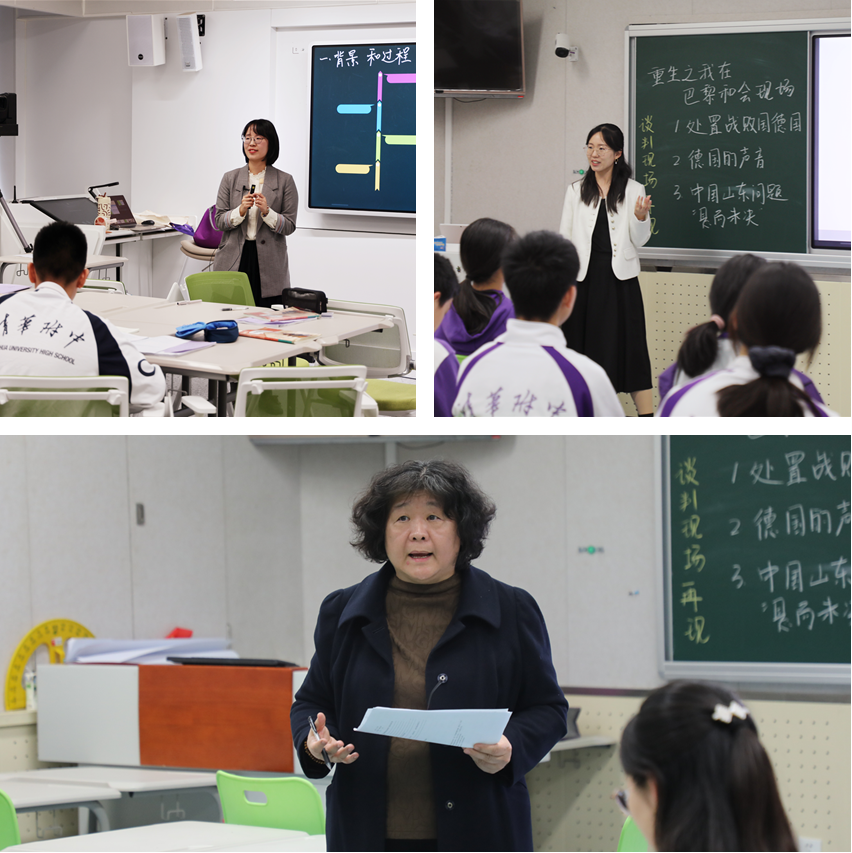历史组两节课以AI助力探究与体验。李帅老师讲授的隋唐大运河结合AI知识库梳理史实,李亚珂老师的巴黎和会课堂以角色扮演再现场景,落实核心素养。杨朝晖教授肯定两位老师运用AI有效破解历史“难、多、深”的教学痛点,化繁为简、具象化知识,提升教学实效。