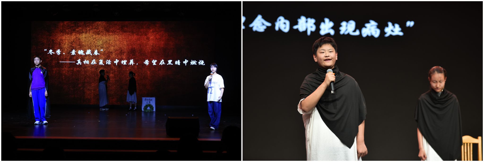 12班与18班改编了世界名著《基督山伯爵》的经典片段。同学们富有感染力的表演再现19世纪欧洲的历史画卷,将正义与救赎的主题演绎得淋漓尽致,尽显经典魅力。