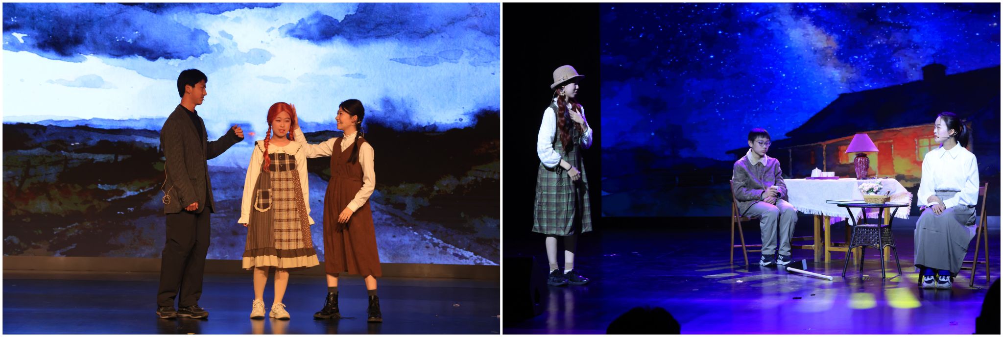 4班、9班与13班联袂演绎英语短剧《绿山墙的安妮》,诠释爱与救赎。主人公安妮失去双亲后被农场夫妇收养,在亲情守护下走出创伤、坚守梦想,成年后放弃城市深造,回归家园守护亲情。