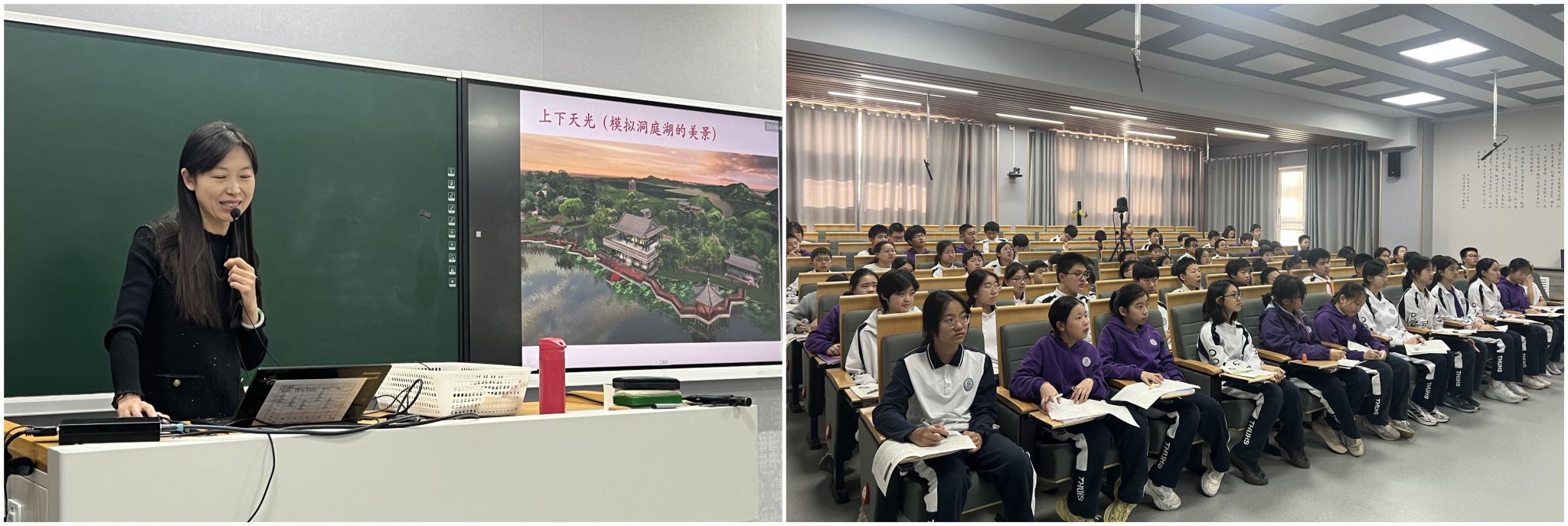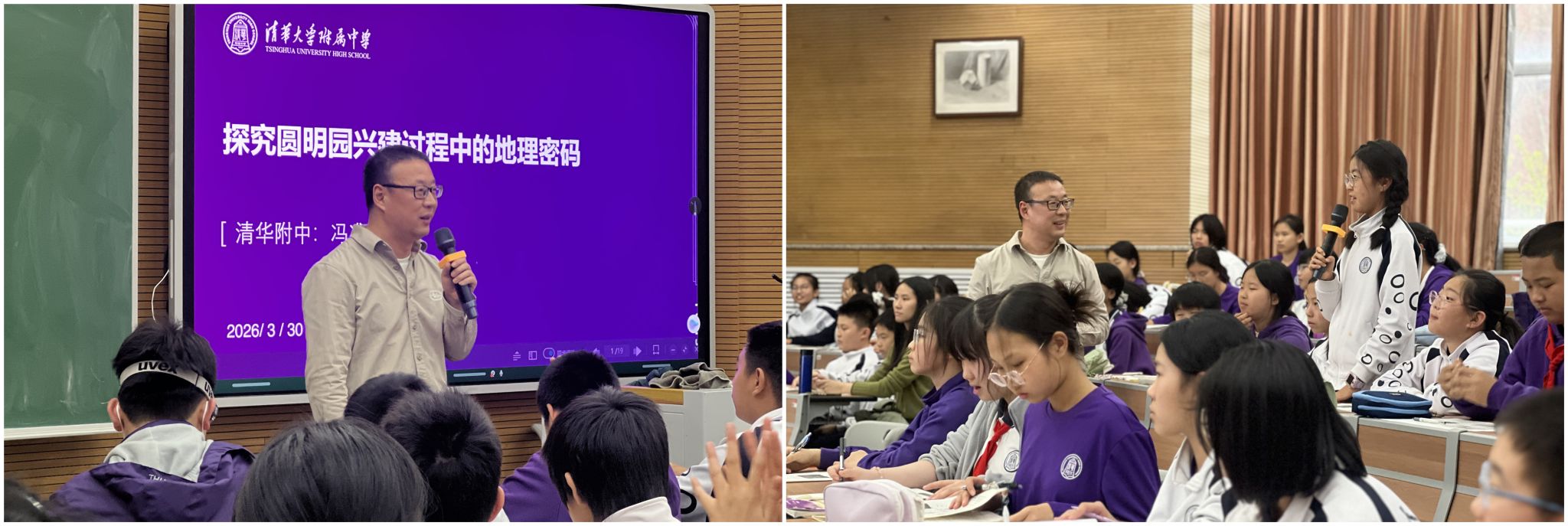 初一学部地理备课组组长冯准准老师带来“圆明园兴建过程中的地理密码”专题讲座,围绕“选址—布局—建设”三大核心引导学生从地理视角解锁这座皇家园林的营造智慧。课堂上,学生们结合圆明园地形图,解读福海、后湖的水体形制所蕴含的宇宙观与政治象征,探究九州清晏的建筑风格与地理环境的适配性。从山水布局到地理科学的解读,学生们在思考与互动中,读懂“天人合一”的造园理念,体会到古代工匠因地制宜的营造智慧。