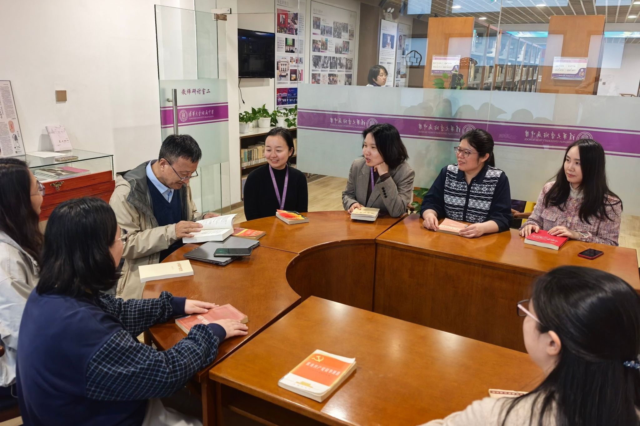 高三英语备课组则以读书分享为载体,在学校图书馆开展主题学习活动。老师们围绕党员道德规范、百年党史、党建理论、共产党人形象等核心主题,分享学习心得、交流思想感悟,深入学习党员品德要求、革命先辈的奋斗历程与党的创新理论,在书香浸润中坚定理想信念,传承红色精神,筑牢思想根基。