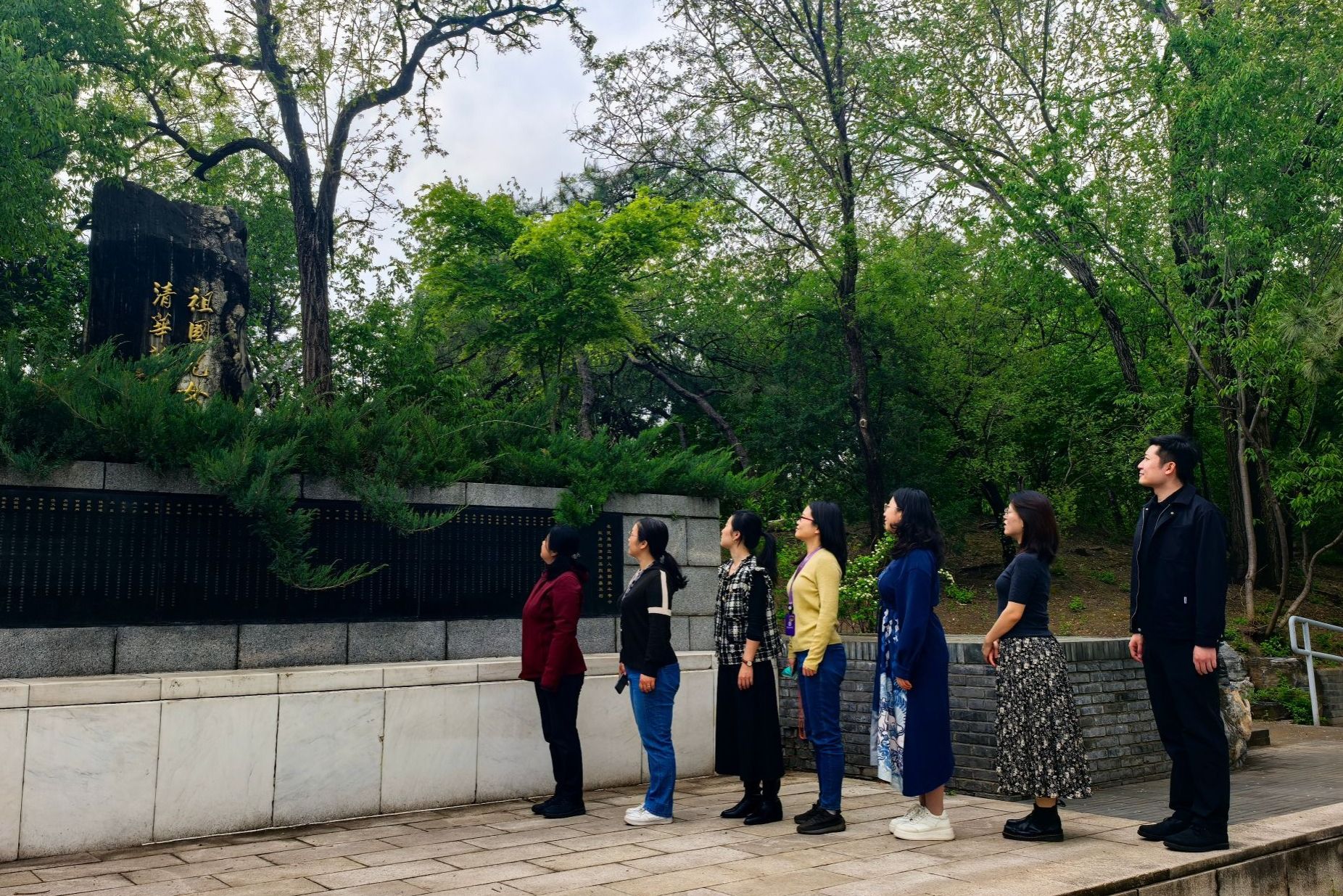 初三英语备课组将踏青赏春与党性教育相结合,组织全体教师前往清华园,开展以“初”为主题的踏青活动。全体教师在孔子像前合影,重温教育初心,坚定育人使命。此次活动以踏青为载体,将党性修养与师德师风建设有机融合,既缓解了毕业班教师的工作压力,增进了团队凝聚力,更引导全体教师坚守育人初心、立足岗位担当。