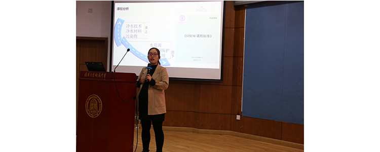 高研实验室付静老师作《净水挑战——拯救母亲水窖计划》主题汇报,从整体的课程设计到实施环节进行了详细的展示,并针对于净水装置的二次设计进行了说课汇报。通过设计制作一个水处理装置,并评价该装置的净水能力,帮助学生树立关心环境和节约用水意识,认识饮用水安全重要性,关注社会公益,特别是贫困地区,树立学以致用造福社会的信心。在整个项目式学习过程中,培养学生的自主查阅文献、自主探究能力,进一步掌握科学探究和工程实践的一般过程和方法。