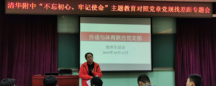 各党支部最后结合主题教育“学习党章党规、提高党性修养”“潜心立德树人、矢志教育报国”专题组织了特色活动。外语体育教研组联合党支部开展有关党章党规的知识竞赛以及学习张玉滚、黄文秀、黄大年先进事迹。