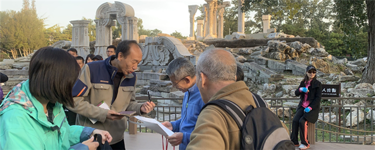 老师们在与受邀请游客共同完成问卷任务的同时,就根据之前的支部内培训内容进行了讲解与说明,从而更好地帮助游客朋友了解“万园之园的圆明园”的前世今生,特别是深入的了解关于长春园中“西洋楼”遗址景区的保护和利用情况。