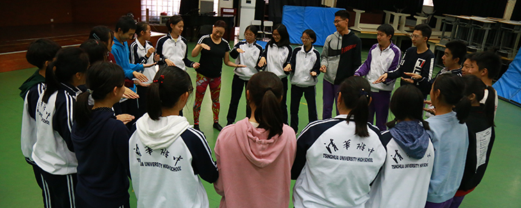 周玟汐老师首先用音乐打开学生们心灵的大门,让同学们在放松身心的同时逐渐激发自我。面对严重的课业压力和学习负担,很多同学经常能在生活中感到疲惫和压抑。这节体验课能有效地帮助这些同学们释放压力。老师用音乐和舞蹈带动同学,将他们内心的压力激发并释放出来。同学们围成一个大的圆圈,跟着音乐节奏,模仿站在圆圈中心的老师的一系列动作。很多同学在一开始表现出腼腆的神情,但在周老师的带动下都积极融入、努力参与。动作的幅度越来越大,移动的范围越来越广,同学们跑着和跳着,跟随音乐做出连贯的动作。拘谨的内心得到了充分地释放,累积的压力也一扫而光。逐渐地,同学们由老师带领跳舞到自己发掘舞步、自己领舞。