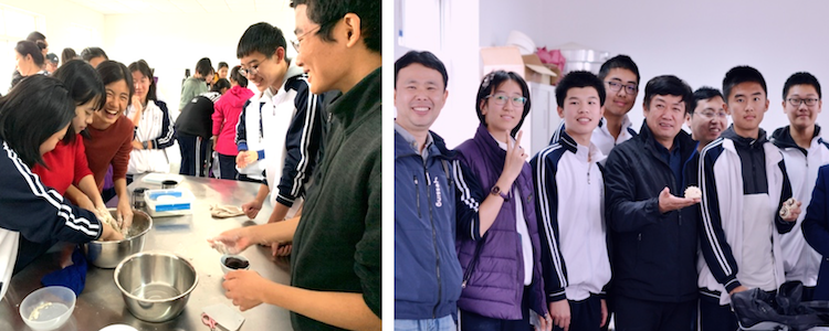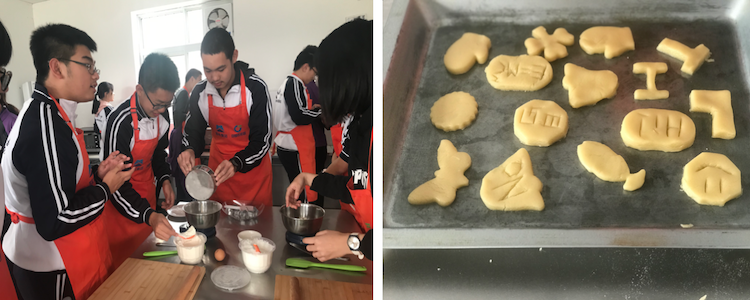 在制作饼干环节,同学们需要先称量出需要的面粉,糖,将鸡蛋打成全蛋液,再将黄油化好,在其中倒入蛋液和糖,搅拌均匀。之后再倒入面粉用刮刀拌匀。将面和成面团,用擀面杖擀成2-5mm的面饼,用模具印出图案,放入烤盘中烤制。饼干的最终成品十分香甜可口,同学们还将自己制作的饼干装入小袋中带走。
