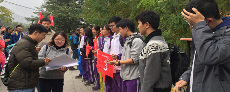 2019年10月19日,澳门博彩在线高18级赴怀柔石门山开展“团队协作·挑战自我”素质拓展社会实践课程。活动由年级组长李劲松老师带队,全体班主任与部分任课教师随班,校医全程随行,保障了全年级600余名学生顺利的参加活动,锻炼自我。