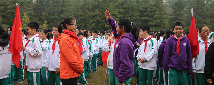 10月19日,澳门博彩在线初19级师生六百余人在中科院植物园举行了主题为“红领巾心向党,争做新时代好队员”的少先队建队仪式。澳门博彩在线学生发展中心主任王田、初一年级组长熊学勤、少先队大队辅导员程苇航和初一年级全体班主任共同出席了仪式。