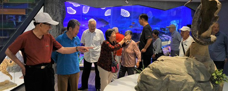 老同志们参观学校标本馆