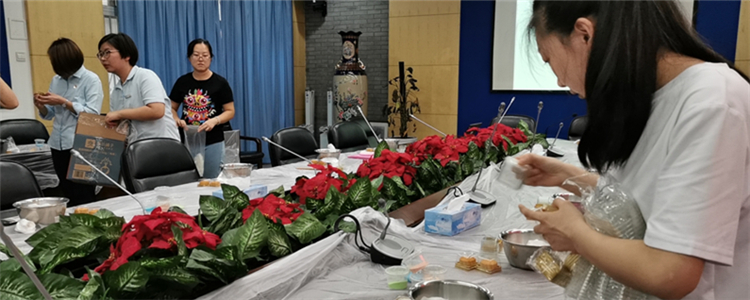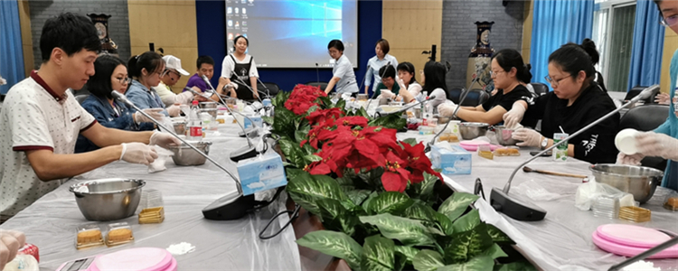 本次活动的重头戏是月饼创意DIY活动。活动现场,烘焙老师用有趣生动的语言向大家介绍了手工制作月饼的技巧等内容。随后,在烘焙老师的指导下,大家热情高涨地进行分料、称重、擀皮、包馅、压模,教书先生们纷纷成为面点大师。一个多小时的活动里,每一位参与者都乐在其中。活动结束后,老师们互相展示自己DIY的成果,并把月饼精心包装好带回家与家人分享节日的喜悦。