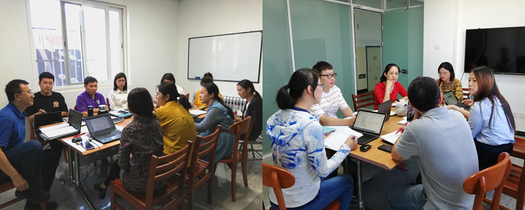 初三数学备课组针对目前教学要求,研讨了各层级学生的教学内容,进度及具体方案;针对10月月考题进行创编,定稿;确定了十一假期作业,商讨了如何讲解试题、如何让学生能够更有效的改错。初二数学备课组活动,由张钦老师进行了教学技术培训,易投屏软件实现电脑和屏幕的无线连接,onenote软件进行解方程和因式分解的教学。其他老师分享了《全等三角形》单元测验中附加题学生们的奇思妙想。初一数学备课组就区进修时要做的教材分析和教案分析进行了讨论。丁晓梅和肖娜两位老师就整式的加减和去括号详细的做了教案分析并进行了演示,组内各成员随后积极讨论,献计献策。