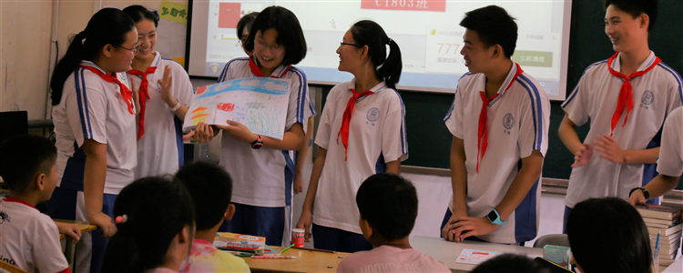 这是我第一次参加公益活动和这样特别的主题队会,见到孩子们之前我很激动也很紧张。在地铁上,在乡间小道上,我一直在想孩子们会是什么样的呢?到了学校,我给同学们讲新中国70年的社会变迁,还和他们一起互动、绘画。我对一个小女孩的作品很感兴趣,起初看到她画了许许多多的小星星,我很诧异,结果她说:祖国就是许多小星星,无时无刻不在发光!在回家的路上,我想起女孩的画和话,泪流了下来。——郝英乔