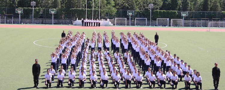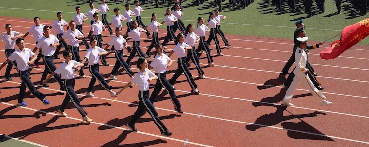 新生进行分列式表演