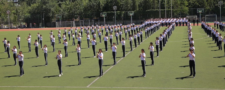 检阅仪式后是新生分列式演出。伴随慷慨激昂的检阅进行曲,国旗班首先迈着整齐的步伐昂首挺胸而来。随后,高一年级16个方阵依次齐步走过主席台接受检阅。同学们精神焕发,踢着整齐的正步,喊着嘹亮的口号,英姿飒爽地走过主席台。同学们气势如虹的阵容、铿锵有力的脚步,充分体现了本届高一学生的良好精神风貌,他们出色的表现赢得了在场领导、老师的阵阵掌声。
