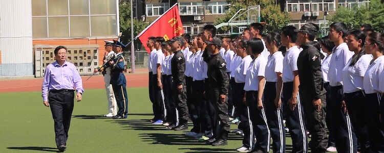 在奏响庄严的《中国人民解放军军歌》后,王殿军校长在军训营长的陪同下,检阅了各连队方阵。新生们一句句“校长好”,一声声 “为学校争光”,精神饱满,洪亮而高亢。