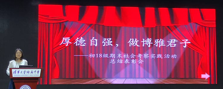 活动开始,首先展示了同学们社会考察过程中的精彩瞬间,带领大家一同欣赏了社会考察实践的优秀成果,并进行了“行走的课堂”考察研究成果评比活动的颁奖。社会考察领队向东佳老师和张钦老师、年级组长张彪老师分别为获得优秀考察小组的团体和个人颁奖。