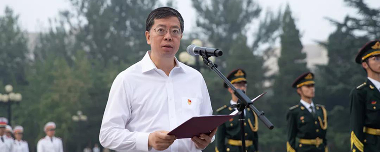 校长邱勇主持升旗仪式(图片来自清华大学微信公众号)