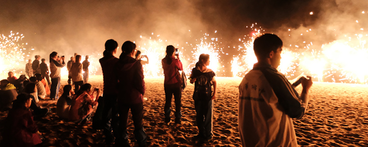 篝火晚会上的焰火表演