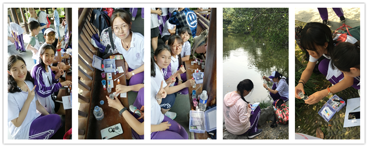 在西湖的入水口和出水口,同学们分别进行了水质监测,并将测试结果进行了对比研究,用科学实验鉴证了西湖对杭州水质净化的重要功用。
