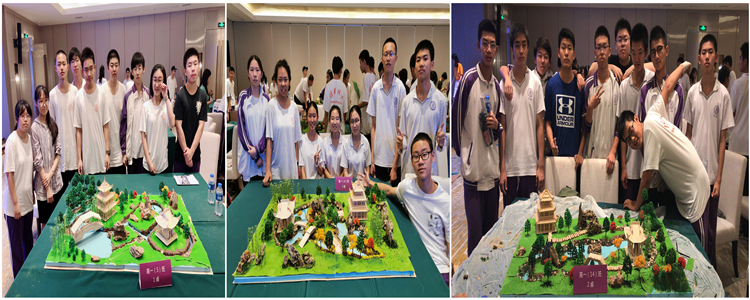 参观拙政园后,同学们上了长达一个小时的《苏州园林营造艺术赏析》课程,课程学习完毕,同学们开始了园林营造实践。每个小组需要在规定的时间内,用指定的材料包,设计并制作一个园林沙盘。同学们将一日考察的所看、所听、所想运用到了设计中,在长达四个小时的活动中,大家忘记了手机、忘记了吃饭,投入到忘我的制作环节中。最终,每个小组都呈现出了非常精彩的园林设计作品。在分享环节,同学们对自己的设计意图和作品内涵进行了精彩的阐释。通过实地的参观与课程的学习,同学们将所学的园林文化知识淋漓尽致地展现在自己的作品中,引得现场阵阵掌声。领队李书霞老师在总结环节中这样评价同学们的作品和表现:“心中有丘壑,脑中有设计;眼中有光芒,手中有作品。赏心悦目,寓意深远,诗情画意,家国胸怀