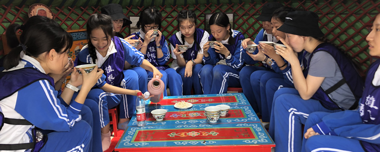 7月9日早晨,师生来到敕勒川草原哈素海蒙元文化旅游区进行草原体验课程。在这里,学生了解蒙元文化,进行DIY制作蒙古包,探访牧户,射箭,打布鲁,祭祀敖包,绘制蓝图等活动。活动期间,全体师生共同演唱了《我和我的祖国》,并录制快闪。