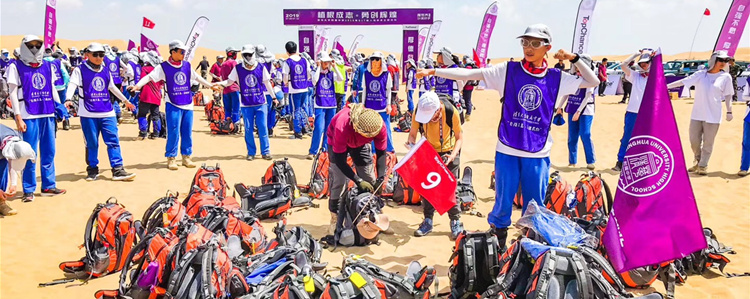 库布齐沙漠是中国第七大沙漠,“库布齐”汉语意思是“弓弦”,生活在这里的人们在黄沙漫天、荒无人烟的沙漠里寻找希望。穿越沙漠,度过高三,是对学生的一份考验。相信这次携手战胜困难的经历,会成为高17级同学的宝贵财富,助力他们在未来的生活中战胜自我,完成挑战,迎来美好人生。
