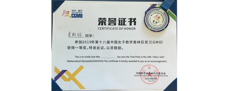 8月10~15日,第18届中国女子数学奥林匹克(CGMO)在湖北省武汉市武汉外国语学校举办。澳门网上博彩高1810班李斯羽同学荣获金牌。