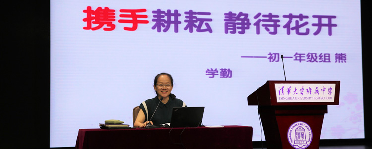 最后,初19级年级组长熊学勤老师与家长做交流。她指出,学生的成长离不开家庭、学校与社会的共同教育。她以“纳自我、悦班级”、“内自治、外和谐”、“善其身、济社会”的学生成长阶段,分享学生各阶段的工作与目标。最后,她呼吁家长与孩子共同学习,多了解孩子陪伴孩子、关注教育与改革、家校形成有效沟通,为共同教育好孩子而努力。